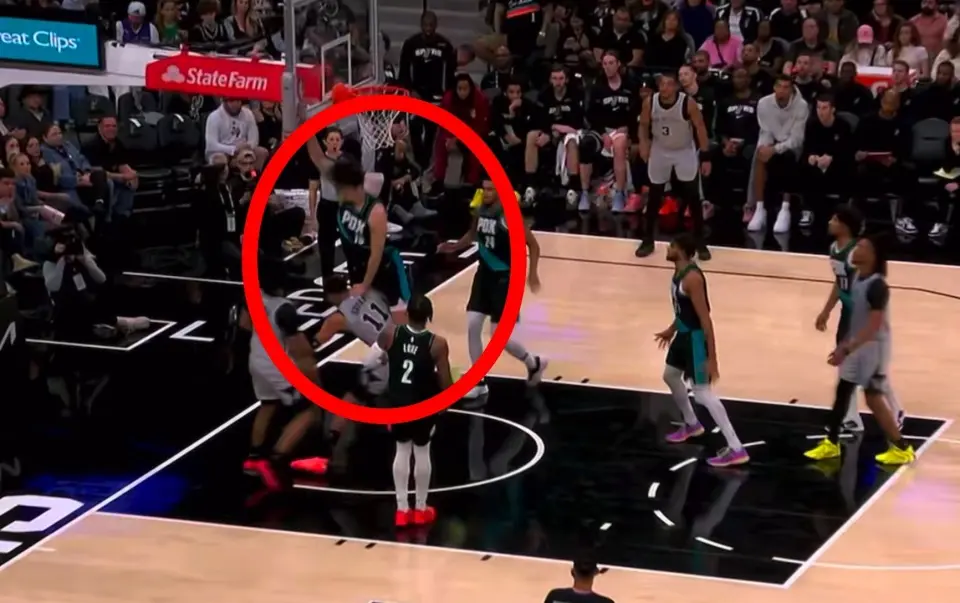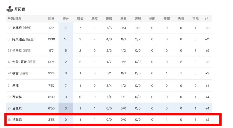 NBA常规赛继续进行,波特兰开拓者在背靠背的赛程中造访圣安东尼奥,全队显露出明显的疲态。在这个常规赛的夜晚,对于中国球迷而言,焦点的转移并非取决于比分,而是替补席末端的人员轮转。杨瀚森终于在首节末段获得了登场指令,尽管出场时间被严格限制在3分58秒,短暂的亮相让杨瀚森的数据定格在0分1篮板1助攻1盖帽,正负值达到+2,下面重点说一下开拓者的战术细节!杨瀚森刚要挡拆被直接赶回底角鼎盛证券,最后0.4秒被骗了!(杨瀚森3分58秒数据请查看文章末尾统计图)