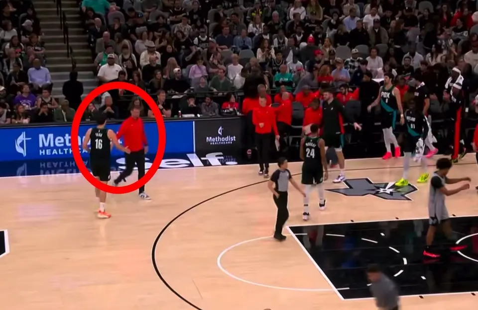 比赛进行到首节还剩1分37秒时,杨瀚森在防守端贡献了一次极为精彩的封盖,展现了他在护框时的位置感与时机判断。进攻端虽然没有获得出手机会,但他在弧顶持球时展现的策应天赋令人印象深刻。面对马刺防守阵型的空隙,他敏锐地捕捉到了卡马拉的空切路线,送出一记恰到好处的妙传,助攻队友轻松上篮得手。这次助攻清晰地表明,只要给予他支配球的权力,他完全有能力成为高位的战术轴心。略显遗憾的是首节结束前0.4秒,他在防守端被对手的假动作晃起吃到犯规,这是年轻球员适应NBA节奏必经的“学费”。下场时斯普利特主动上前与他击掌致意。